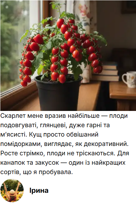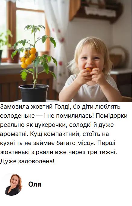 Адаптація до будь-яких умов Наші сорти виведені спеціально для компактного вирощування. Вони стійкі до типових хвороб томатів, не бояться перепадів температур і стабільно плодоносять навіть у горщиках на балконі.